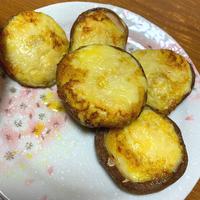 おつまみにしいたけのカレーマヨ焼きはいかがでしょうか。しいたけの軸をカレーマヨネーズで和えてしいたけにのせてトースターで焼きました。パン粉をのせて焼くことで、サクサク食感が楽しめますよ。ぜひお試しくださいね。