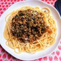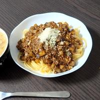 なすとひき肉の少しスパイシーなボロネーゼソースになりました。粉チーズは少し多めに振りかけても美味しいと思います。
