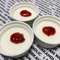 - 2 無糖ヨーグルト、レモン汁を加えて手早くかき混ぜ、水で塗らした型に流し入れ、冷蔵庫で1時間ほど冷やし固めます。