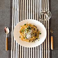 パスタは表記されている時間よりも1.2分少ない時間で茹でてください。 具材とパスタの馴染みが悪いときは、大さじ2ぐらいのパスタのゆで汁を加えてください。 お好みで最後にごまを振りかけてお召し上がりください。
