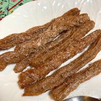 生地が硬くて絞りにくかったです。軽ーいチュロスです。揚げたてが美味しいのですぐ食べましょう。
