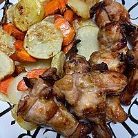 - 3 クッキングシートを敷いた天板に、2の皮目を上にして並べ、2の漬け汁をかけ、220℃のオーブンで25分程焼きます。