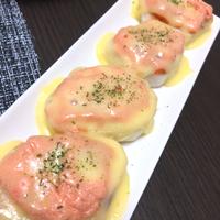 大きな山芋だったので、1.5cm の厚みで8枚にして、明太子88g に大さじ1強のマヨネーズを混ぜてスライスチーズ3/4枚を乗せて焼きました。マヨネーズを混ぜることで味がマイルドになり焼きたてはめちゃ美味しかっ た👌 火を使わずにこんなに美味しい山芋料理ができるなんて感動\(^o^)/