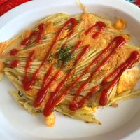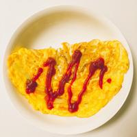 - 6 皿に盛り付けてケチャップをかけてできあがりです。