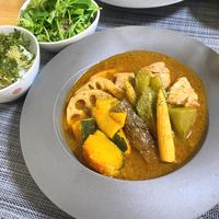 野菜の旨みたっぷりで、手羽先や手羽元はトロトロに柔らかく煮込まれています。レンコンや夏野菜など具沢山で、彩り豊かな一品に仕上がります。スープはクミンとカルダモンの香りが夏にぴったり。めんつゆの量は控えめにするのがコツです。カレールーの量を調整すれば、サラサラのスープカレーからとろみのある濃厚なカレーまでお好みの食感に仕上げられます。