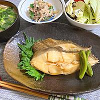 食べレポに習い、片栗粉をまぶして焼き、ししとうの代わりに、長ネギをたっぷり添えて、美味しくいただきました。