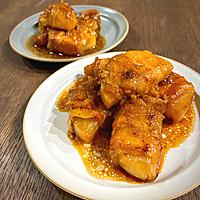 大根1/2本、豚バラ250g(13枚)、薄力粉の代わりに微粉おからパウダー使用、調味料の量はレシピのまま+砂糖小さじ2。