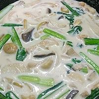 - 7 残りのクリームソースの材料を入れて中火で加熱し、沸騰直前になったら弱火にして、鶏むね肉に火が通るまで5分程加熱し、全体に軽くとろみがついたら火から下ろします。