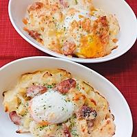 じゃがいもとウィンナーの温泉卵のせグラタン レシピ・作り方