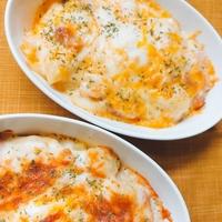 新じゃがを使いました。下はレシピ通りに粉チーズをかけ、上のはピザチーズをかけて焼きました。なめらかな仕上がりでじゃがいもが甘くて温泉卵で満足感もあり美味しかったです。粉チーズの方はじゃがいもの味が引き立つ気がしました。ピザチーズの方はチーズのこくがありこちらも美味しかったです。