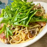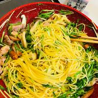 最後パスタと水菜を余熱で絡めたら、、