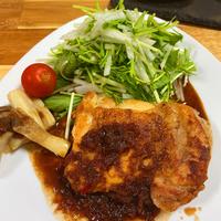 写真がうまく撮れなかったけど、味はとっても美味しかった!!!ソースを煮詰めているときはステーキ屋さんの匂いがした!玉ねぎはほぼすりおろして、ちょこっとだけあらみじん切りにしてみた!もも肉は蒸して火を通した後、もう一回強火にして皮をパリパリにしようと試みてみた!油がすごい跳ねた!