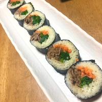 牛肉が高いので、豚肉でのり巻きを作りましたが、すごく美味しく出来ました!豚キムチの味がかなり濃かったのですが、のり巻きのお肉以外の部分と一緒に食べたらちょうど良かったです。