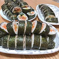 初めてのキムパ作りでした。具の具合と巻き方が意外と難しかったのに驚きでしたが、とても美味しくできました。