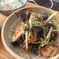 - 2 ナスはヘタを切り落とし、一口大の乱切りにします。