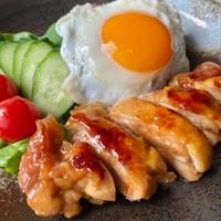 照り焼きチキンに目玉焼きと野菜を添えて、ロコモコ風に仕立ててみました。甘辛くてジューシーな照り焼きチキンに半熟の卵がよく合います。ボリュームたっぷりでおいしいですよ。ぜひ、お好みの野菜をたっぷり添えて試しくださいね。
