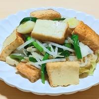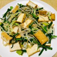 たっぷりのもやしと厚揚げでボリューム満点の一品です。野菜がたっぷりおいしく食べられる、塩味ベースの炒め物です。長ねぎやニラ、生姜やニンニクの香味が食欲をそそります。お肉が入っていなくても厚揚げのおかげでとても食べ応えのある一皿ですよ。