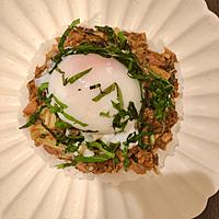 - 6 ごはんをよそい、5をかけます。温泉卵をのせ、1を散らして出来上がりです。