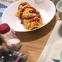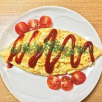 - 6 5の中心に4をのせ、フライ返しで卵をかぶせて具を包みます。一度裏返してからお皿に盛り付けます。お好みで、ケチャップをつけてお召し上がりください。