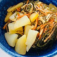 - 5 ボウルに粗熱を取った4と切り昆布を入れて10分置きます。
