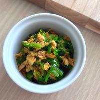 - 2 中火に熱したフライパンにごま油をひき、1を入れ1分30秒程炒めたらツナ水煮、(A)を加えてよく合えたら火から下ろします。