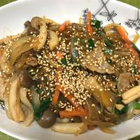 タンミョンでつくるチャプチェのご紹介です。タンミョンとは、じゃがいもやさつまいものデンプンから作られた、韓国の春雨です。今回はさつまいもの春雨を使ってチャプチェに仕上げました。もちもちと弾力のあるタンミョンと、野菜の歯ごたえが、甘辛いタレとよく合いますので、ぜひお試しくださいね。