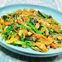 ニラが足りなくて、ピーマンも入れました
