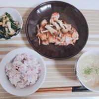 - 3 フライパンに(A)を中火で熱し、1を皮面から焼きます。