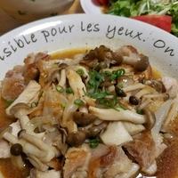 - 5 両面こんがりとした焼き色が付き、中まで火が通ったら、器に盛り付けます。炒めたしめじは鶏肉の上にのせます。