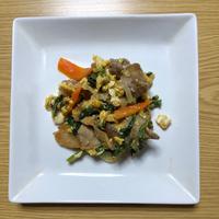 ふわふわに炒めた卵と、しゃきしゃきとした食感の野菜、ジューシーな豚バラ肉を中華風の味付けで炒め合わせました。しっかりとした味付けですので、白いごはんにはもちろん、お酒のおつまみとしてもよく合いますよ。