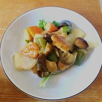 甘酸っぱくて、とても美味しかったです!パプリカ、ズッキーニ、舞茸も加えました。あと、玉ねぎに火がよく通るように、最初から鶏肉と一緒にフライパンに入れました。