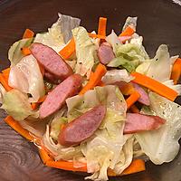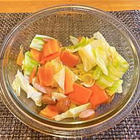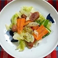 キャベツやにんじんはお好みの大きさに切ってください。ほかの野菜でもアレンジできます。 ウインナーはベーコンでも代用いただけます。
