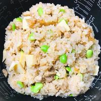 彩りに炊きあがりに枝豆を入れました。かなり薄味だったので炊き上がってから顆粒和風出汁を小さじ2程プラス。