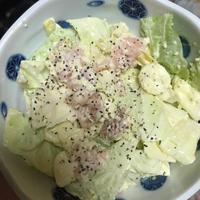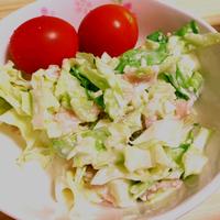 キャベツと生ハムの組み合わせが美味しい簡単マヨ風味の和えサラダのご紹介です。 冷蔵庫に余りがちな材料を使用して、すぐにできる一品に仕上がりました。塩気のある生ハムが入っているので、食欲そそるはず!ぜひお試しください。