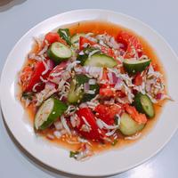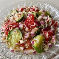 トマトときゅうり、しらす干しを使った和風の和え物です。さっぱりとした箸休めにおすすめの一品です。豆腐やうどんにのせて、ごま油をかけても美味しいですよ。火を使わずに簡単に作れますので、ぜひお試しください。