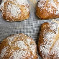 - 7 スケッパーで4等分に切り、クッキングシートを敷いた天板にのせ、濡れ布巾をかけオーブンの発酵機能を使用して40℃で20分程おきます。オーブンから出し常温で10分程おきます。(二次発酵)この間にオーブンを230℃に予熱します。