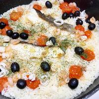 ワンパンお手軽 タラのアクアパッツァ風パエリア レシピ・作り方