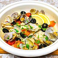 - 6 4を戻し入れ、3、ブラックオリーブ、あさりの水煮を汁ごと、(A)を加えて蓋をし、弱火で15分ほど火を通します。