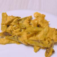 マヨネーズと相性の良いごぼうとかぼちゃを組み合わせてサラダにしました。はちみつが入ったほんのり甘いカレーマヨの味付けはパクパクとたくさん食べられちゃいます。食卓にもう一品ほしいのおかずにぴったりです。ぜひ作ってみてはいかがでしょうか。