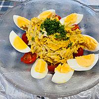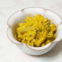 カレー粉がなかったからガラムマサラとクミンで代用。彩り的に茹で卵とミニトマトを飾りました。カボチャ🎃サラダ好きなので新しい味付けで美味しく頂きました。