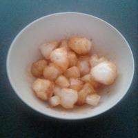 - 3 ボウルに(A)を入れて混ぜ合わせ、砂糖が溶けたら2の半量を加えて絡めます。