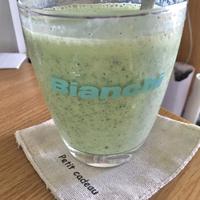 甘さが欲しかったのでバナナとハチミツも足して。全て目分量で入れましたが、爽やかな味に仕上がりました。