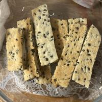 生地がまとまりにくくて、牛乳を足しました。白ごまで分厚く作ったので見た目はなんだか別のクッキーですが、母が甘さ控えめで罪悪感がないから止まらないとパクパク食べてくれました。