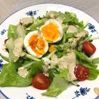 ごまドレッシングはとても良い味でしたが、レシピ通りにしたら食べている後半にタレが足りなくなりました😢