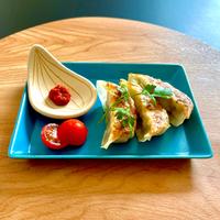 - 4 餃子の皮に3を包み、水で留めます。