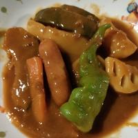 甘唐辛子、かぼちゃ、ウインナー、人参、じゃがいも、蓮根で作ってみました。スープカレー?って思うほど、ドロッとしてしまい、水を足しましたが、やっぱりドロッとしてしまいました😣普通のカレーとして、食べました。味は和風だしが感じられて、美味しかったので、結果オーライで👍