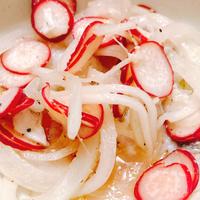 ラディッシュの代わりにカブを使用してもおいしく仕上がりますよ。レシピと同様に薄くスライスをしてから加えてくださいね。