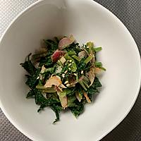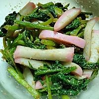 かまぼこが無かったので、カニカマで作りました。ラディッシュの葉で美味しい一品助かります。