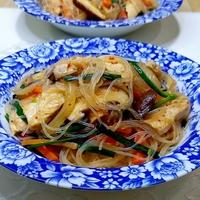 鶏むね肉とニラのピリ辛春雨炒め レシピ・作り方