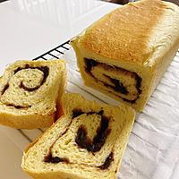 パン生地とつぶあんを巻いて焼いた、あん食パンのご紹介です。切ると断面がくるくるとした渦模様になっていて、とてもかわいい食パンです。そのまま食べてもトーストしてバターをのせてもおいしいですよ。ぜひ試してみてくださいね!